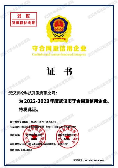 ? ? ? ?京伦科技荣获2022-2023年湖北省、武汉市【守合同重信用企业】