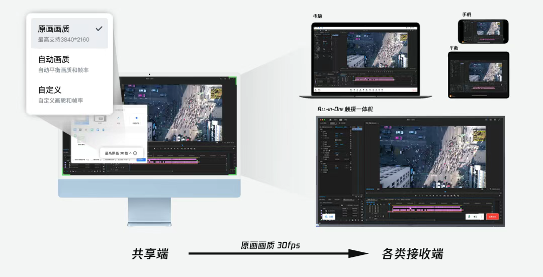 战略复盘决策会里,当需要共享一个密密麻麻的数据表格,「原画画质+30帧」共享屏幕就像给参会者发了高清望远镜——数字不糊、细节“咔咔清晰”,远程也能像围在同一张桌子前开会。